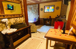 Nossos chalés possuem banheiro amplo, varanda com rede, com direito ao som dos pássaros, cama box, frigobar, TV com parabólica (25 canais), DVD com vários títulos em filmes, para você assistir no conforto de seu chalé e uma aconchegante lareira para as noites frias de Mauá.